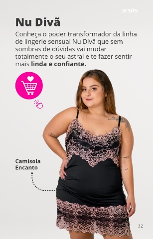 Nu Divã Conheça o poder transformador da linha de lingerie sensual Nu Divã que sem sombras de dúvidas vai mudar totalmente o seu astral e te fazer sentir mais linda e confiante. Camisola Encanto 32
